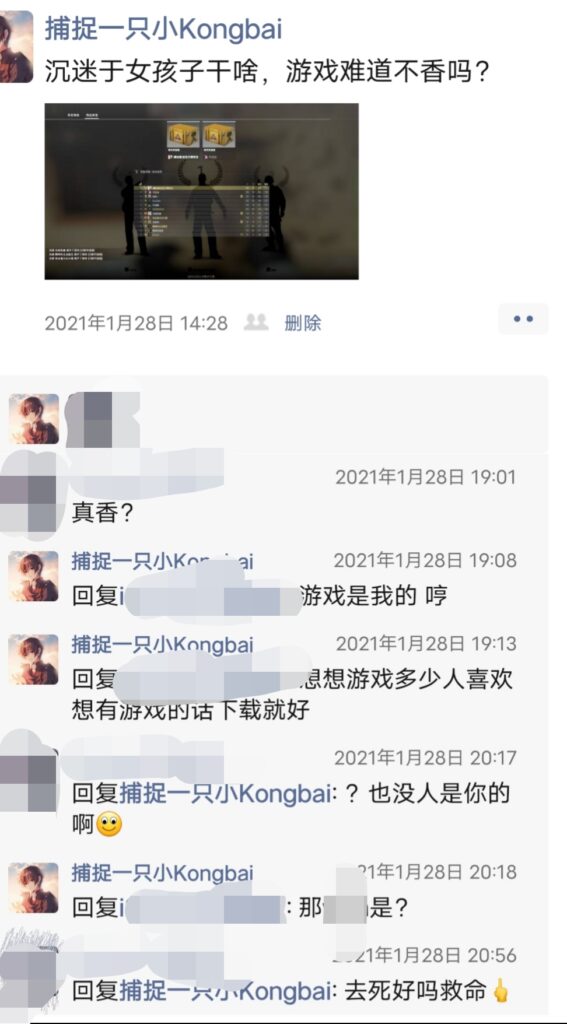 上文说过,因为没有加同年级别的同学,所以朋友圈可以随便整活。